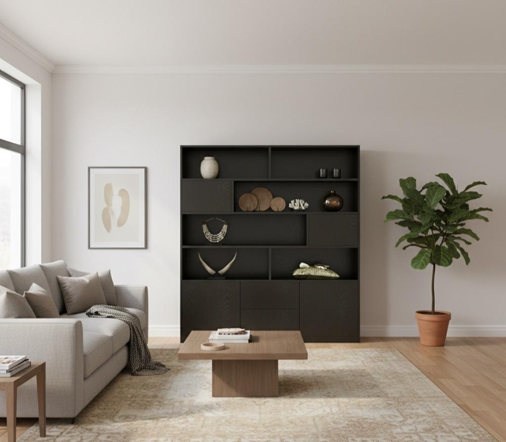 Ontdek de kasten Luca en Elio: moderne, luxe, zeer kwalitatieve meubels met een strak, minimalistisch design en een speelse vakkenindeling. Perfect om jouw favoriete accessoires stijlvol te presenteren, van klein tot groot.
