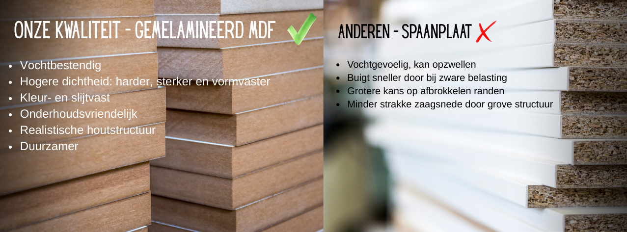 Deze handige opbergkasten zijn vervaardigd uit gemelamineerd MDF – de buitenlaag bestaat uit een onderhoudsvriendelijke kunststof met een realistische houtstructuur. Dit materiaal is niet alleen kleur- en slijtvast, maar ook eenvoudig schoon te maken met een vochtige doek. Lijkt net op eikenhout, maar dan een stuk voordeliger!