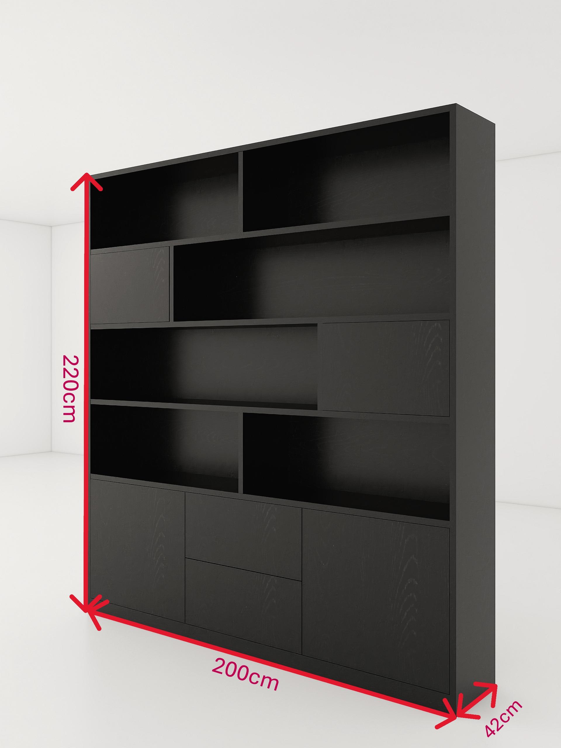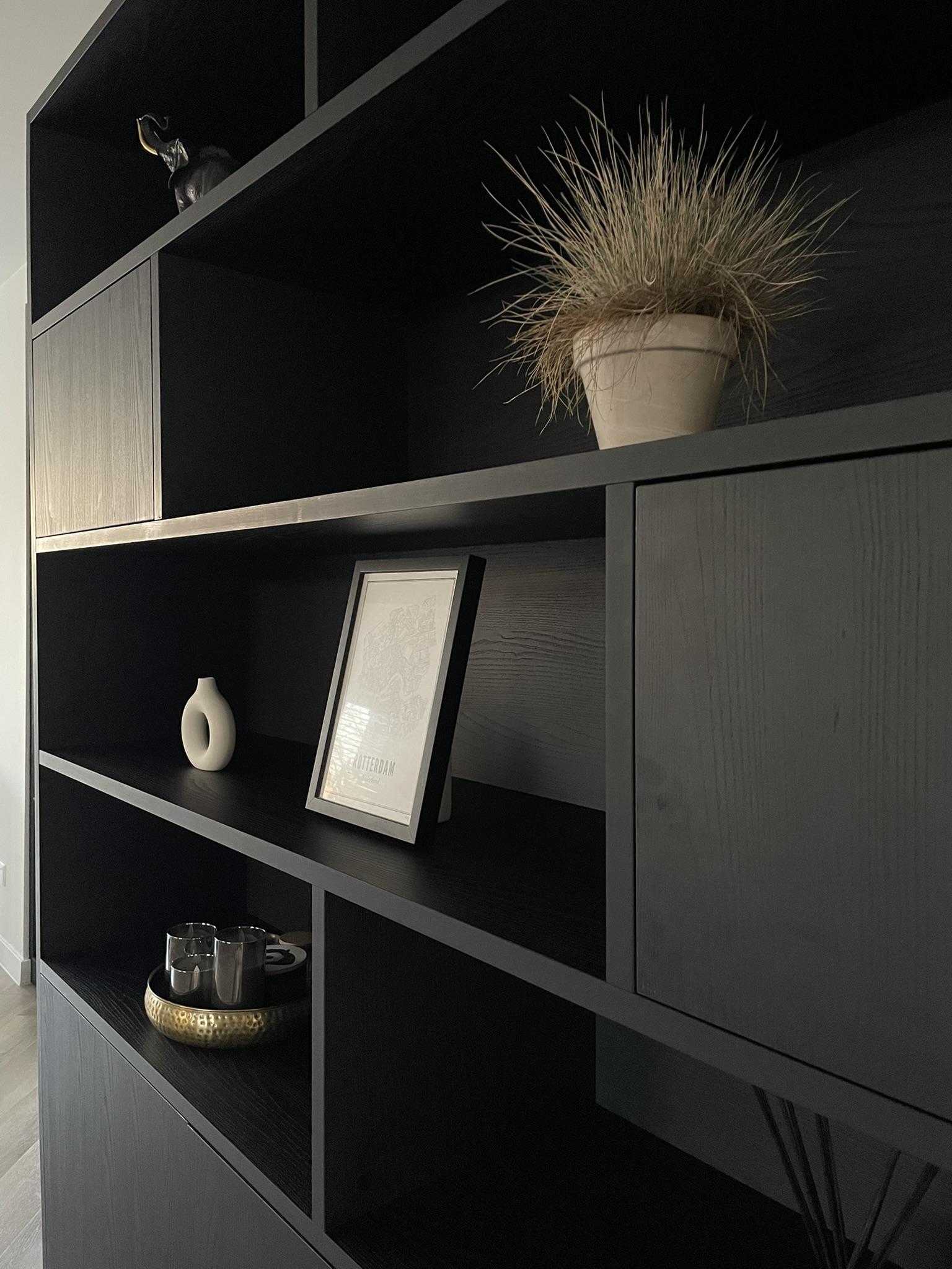 Ontdek de kasten Luca en Elio: moderne, luxe, zeer kwalitatieve meubels met een strak, minimalistisch design en een speelse vakkenindeling. Perfect om jouw favoriete accessoires stijlvol te presenteren, van klein tot groot.